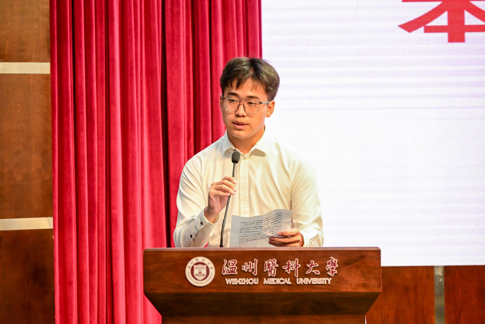 “相信在未来,我们能够如匡衡一般,渴求那一束光芒,求实进取,勤奋钻研,精益求精,不论艰难和困苦。”研究生代表阳晓玲和本科生代表张翔程分别表达了他们迈入新阶段的激动心情,今后他们也将始终秉持南丁格尔精神,潜心求学,践行“大医精诚”的崇高信念和神圣使命,求问更高的学术境界。致力于做一名“仁肃勤朴、求是奋发”的温医大追梦人。