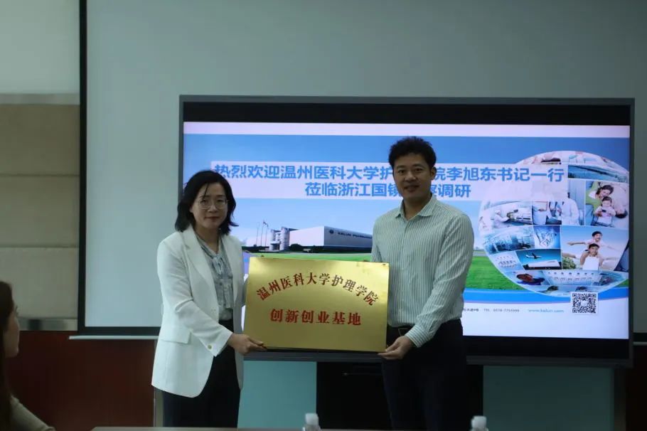 在座谈会上,卓越护生们也分享了他们的参观体验和感受。随后举行了授牌仪式,威廉希尔体育党委副书记陈素云与浙江国镜药业有限公司总经理牟春雷和浙江科伦医药贸易有限公司总经理乔定君代表双方就校外实践教育基地和创新创业基地进行了现场授牌。这标志着学院和企业在人才培养方面的深度合作将进入实质性阶段。双方将通过共建基地的方式,为学生提供更多的实践机会和创新创业平台。