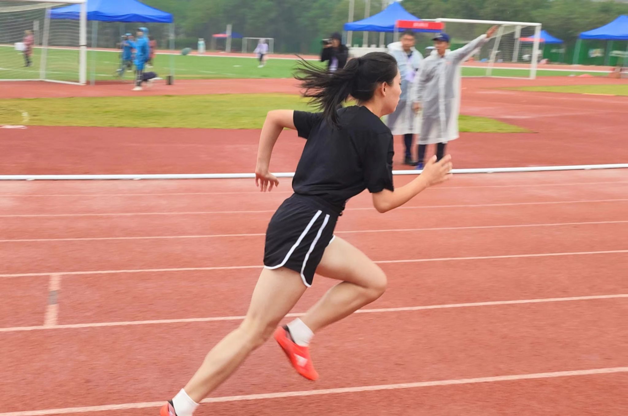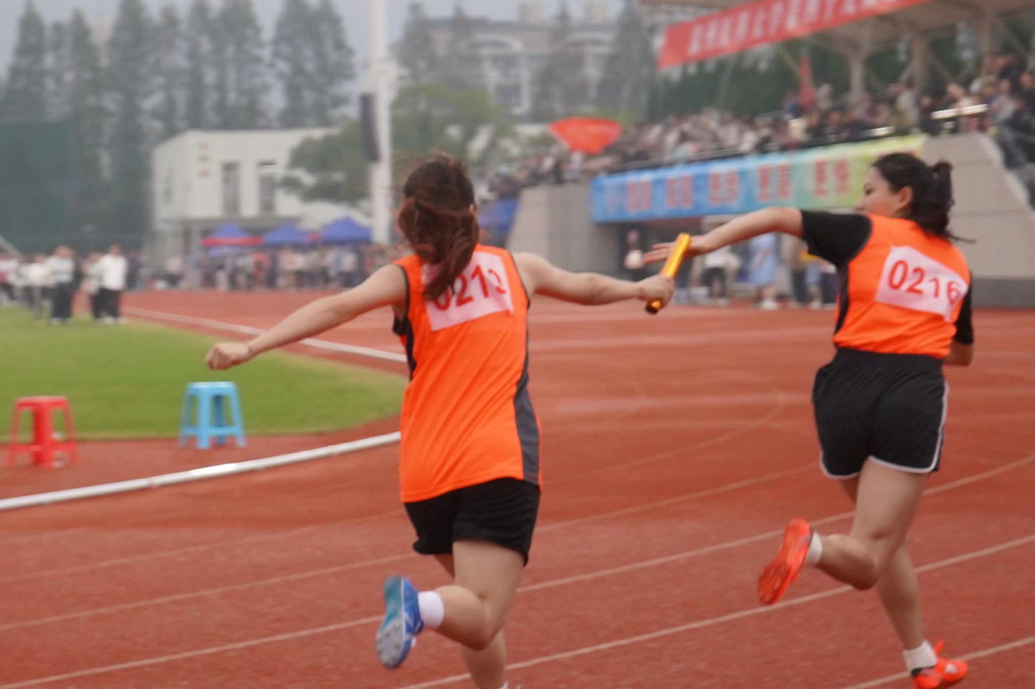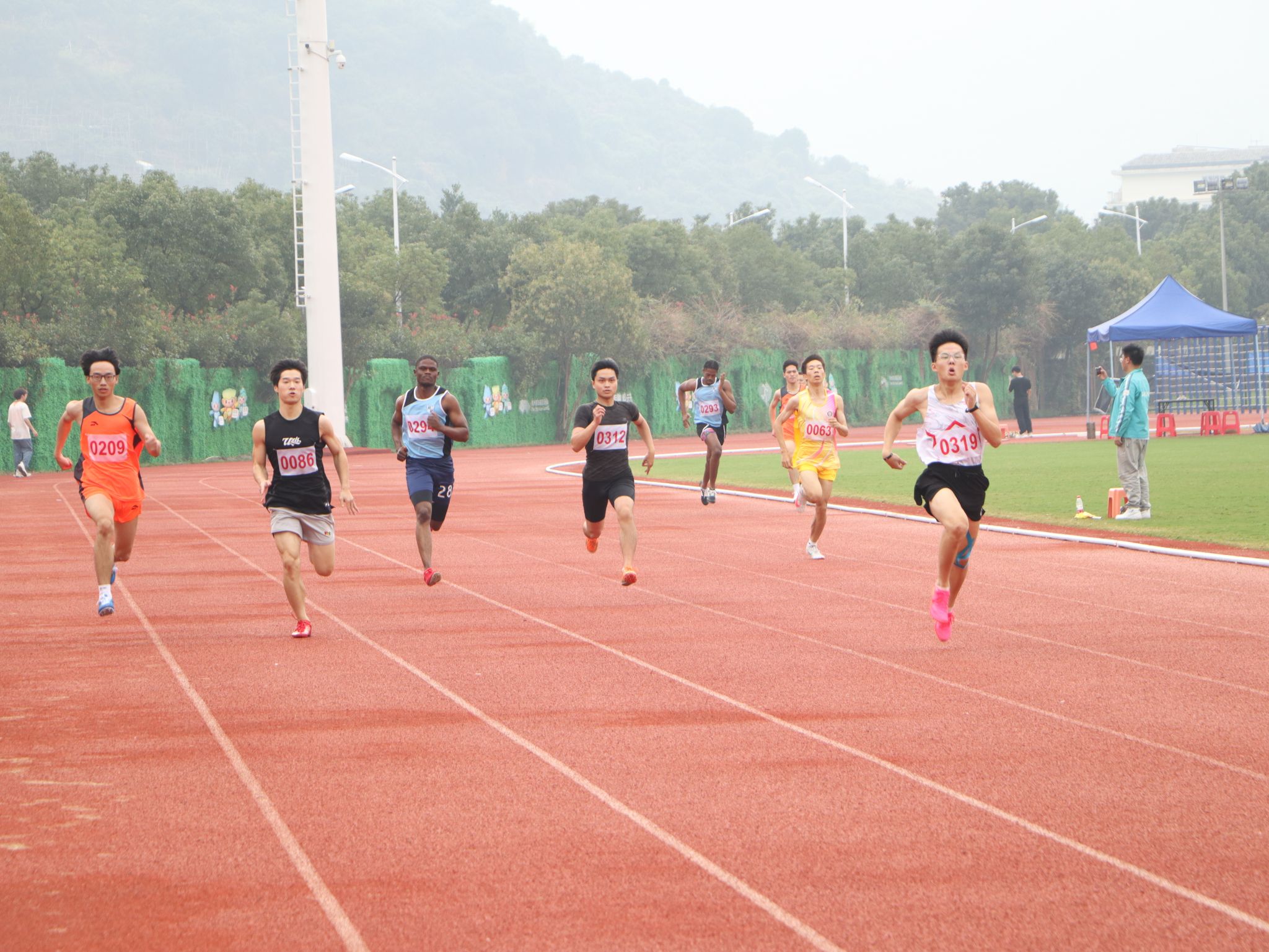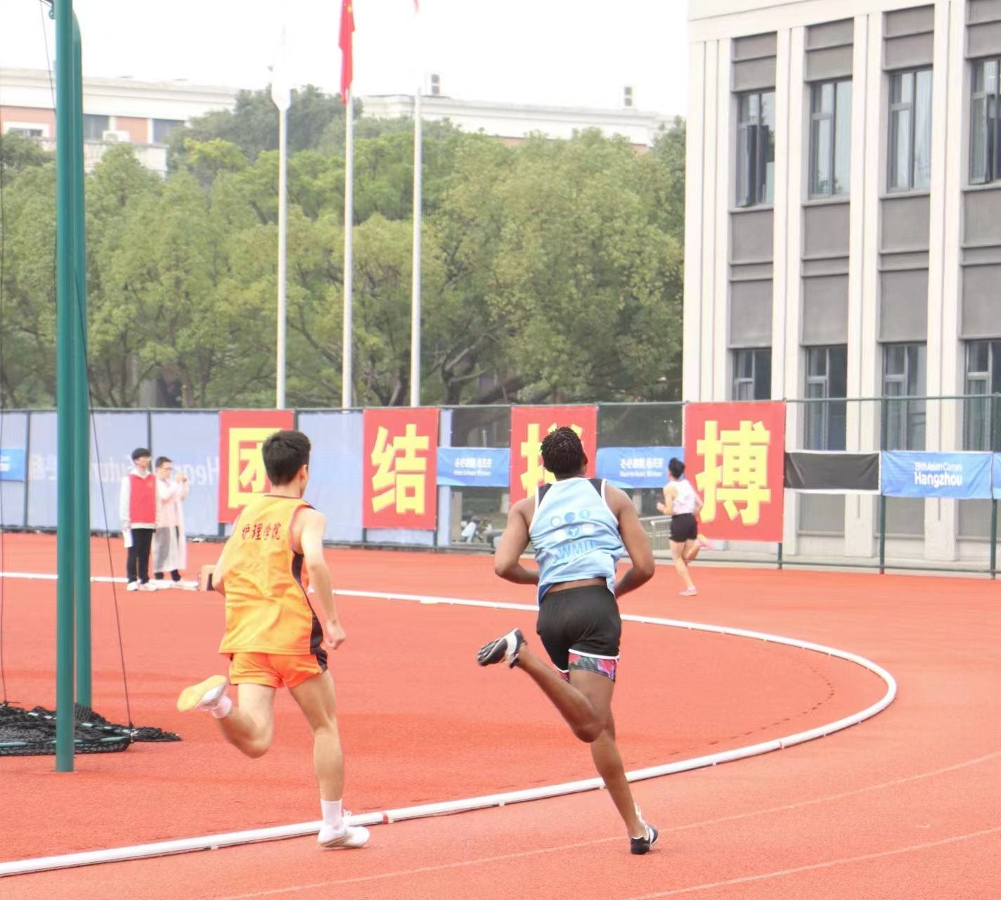 径赛项目,我院学子将汗水挥洒在跑道,让欢笑飞扬在赛场,勇立潮头。我院男子组在比赛中奋勇争先取得良好成绩:王兆乾在男子110米栏中获得第六名;邬易航在男子100米中获得第七名;吕晨垚、康子龙分别在男子400米中获得第五、七名;吕健在男子1500米中获得第八名。我院女子组争分夺秒巾帼不让须眉:蔡晨阳在女子100米栏中获得第二名;宋湘珺、胡玲、蔡晨阳分别在女子100米中获得第一、二、六名;钱锦颖、汤家贝分别在女子400米中获得第三、五名;袁艺锦、陈乐霖分别在女子1500米中获得第二、六名。4×100米接力的赛场上我院运动员齐心协力,勇往无前——何骏杰、黄敏峻、宋佳骏、邬易航获得男子组第四名;宋湘珺、汤家贝、胡玲、钱锦颖获得了女子组第一名。其中我院女子组接力以0:53.90的好成绩打破了原校记录。