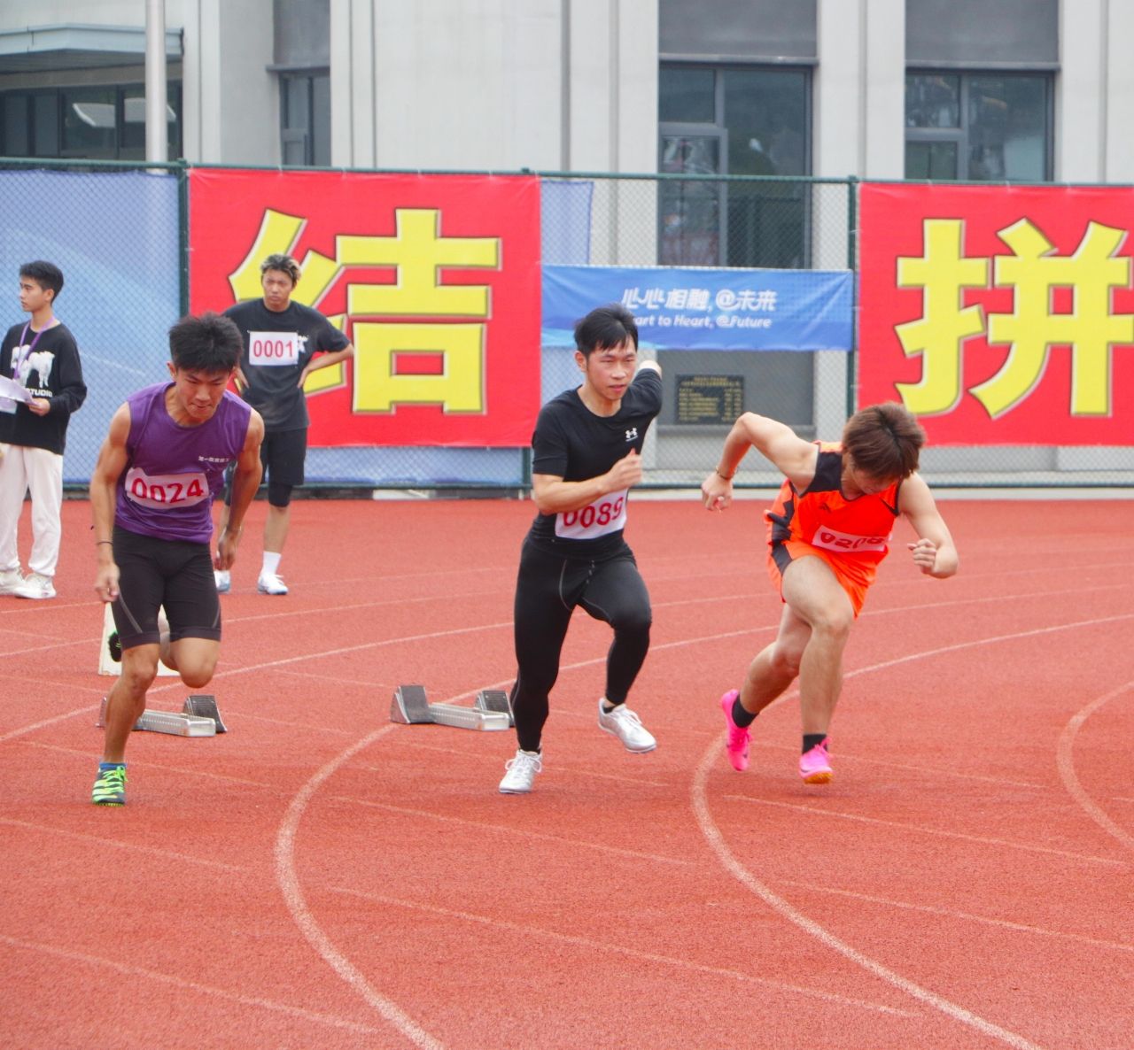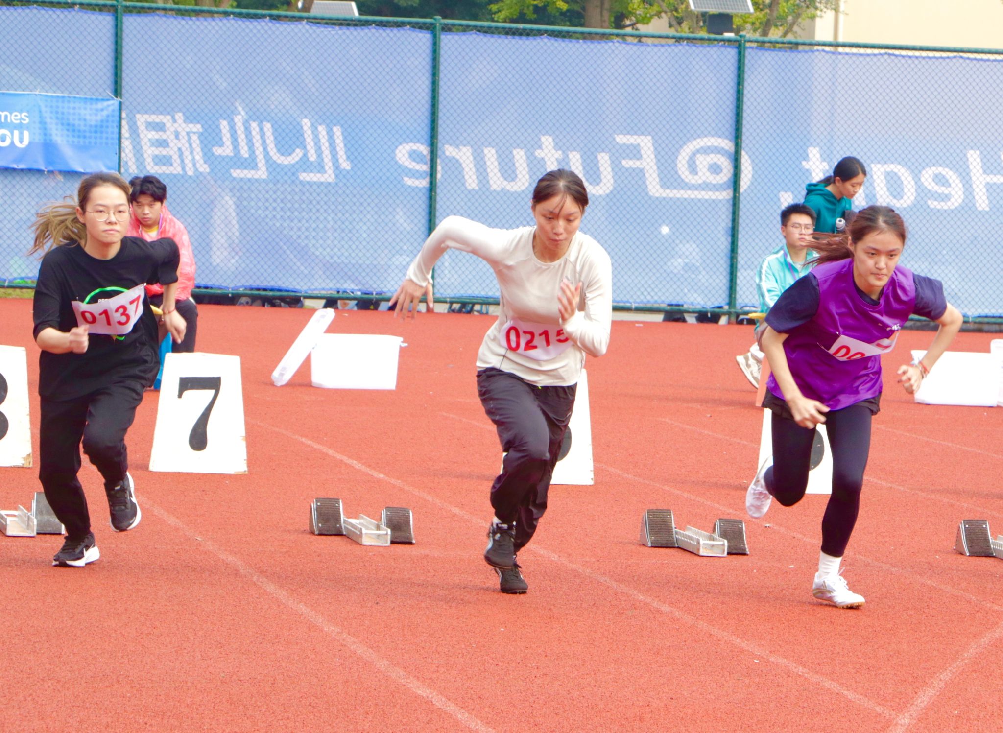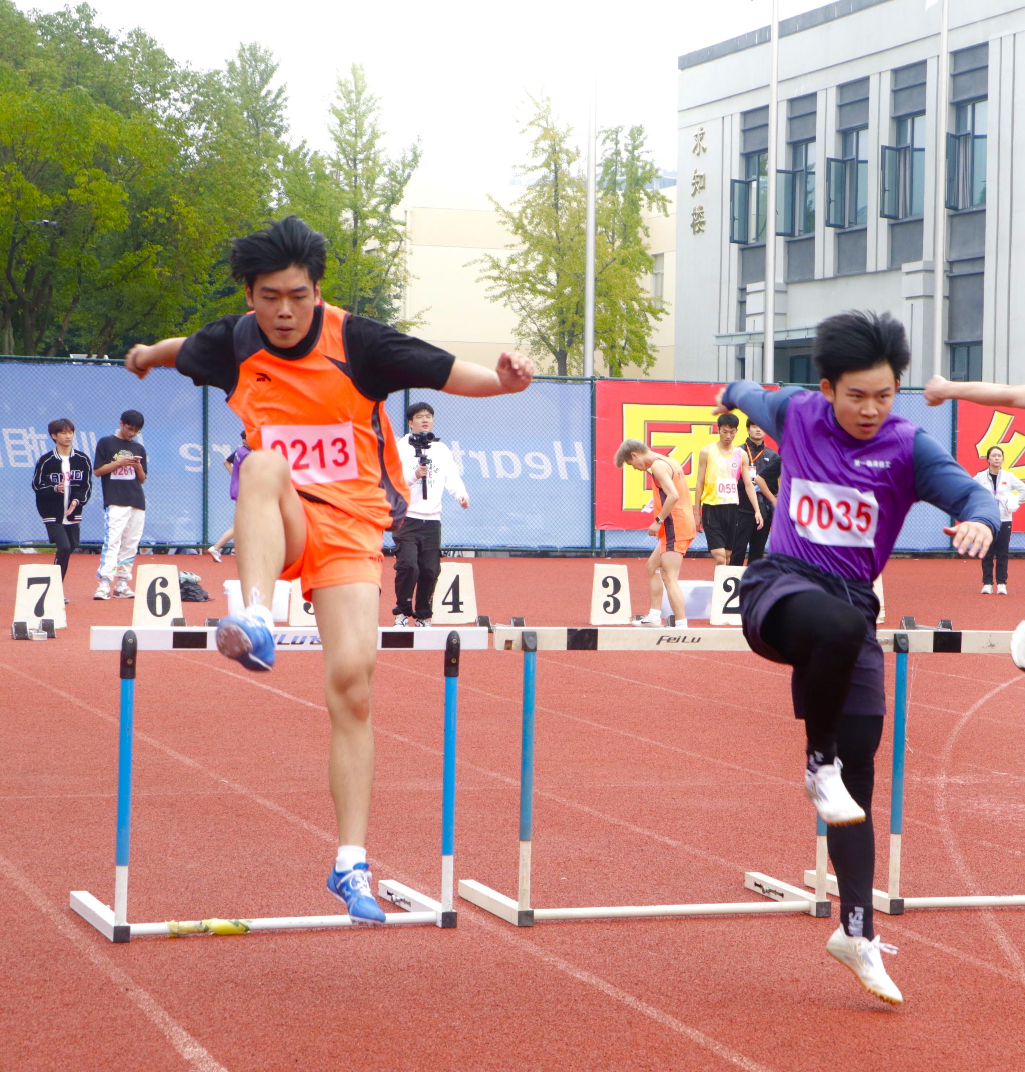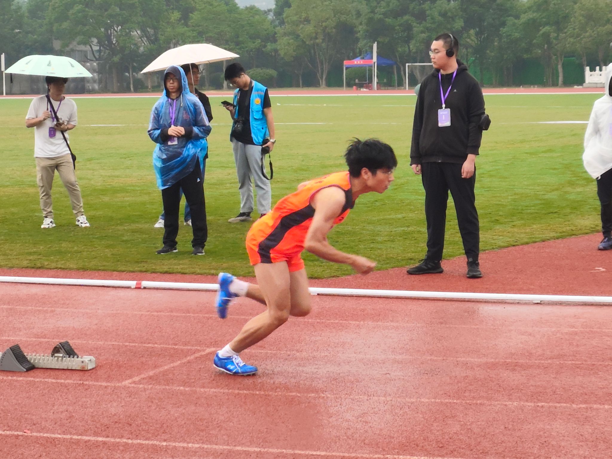 径赛项目,我院学子将汗水挥洒在跑道,让欢笑飞扬在赛场,勇立潮头。我院男子组在比赛中奋勇争先取得良好成绩:王兆乾在男子110米栏中获得第六名;邬易航在男子100米中获得第七名;吕晨垚、康子龙分别在男子400米中获得第五、七名;吕健在男子1500米中获得第八名。我院女子组争分夺秒巾帼不让须眉:蔡晨阳在女子100米栏中获得第二名;宋湘珺、胡玲、蔡晨阳分别在女子100米中获得第一、二、六名;钱锦颖、汤家贝分别在女子400米中获得第三、五名;袁艺锦、陈乐霖分别在女子1500米中获得第二、六名。4×100米接力的赛场上我院运动员齐心协力,勇往无前——何骏杰、黄敏峻、宋佳骏、邬易航获得男子组第四名;宋湘珺、汤家贝、胡玲、钱锦颖获得了女子组第一名。其中我院女子组接力以0:53.90的好成绩打破了原校记录。