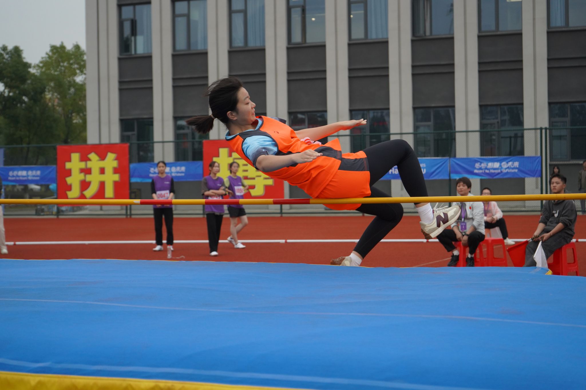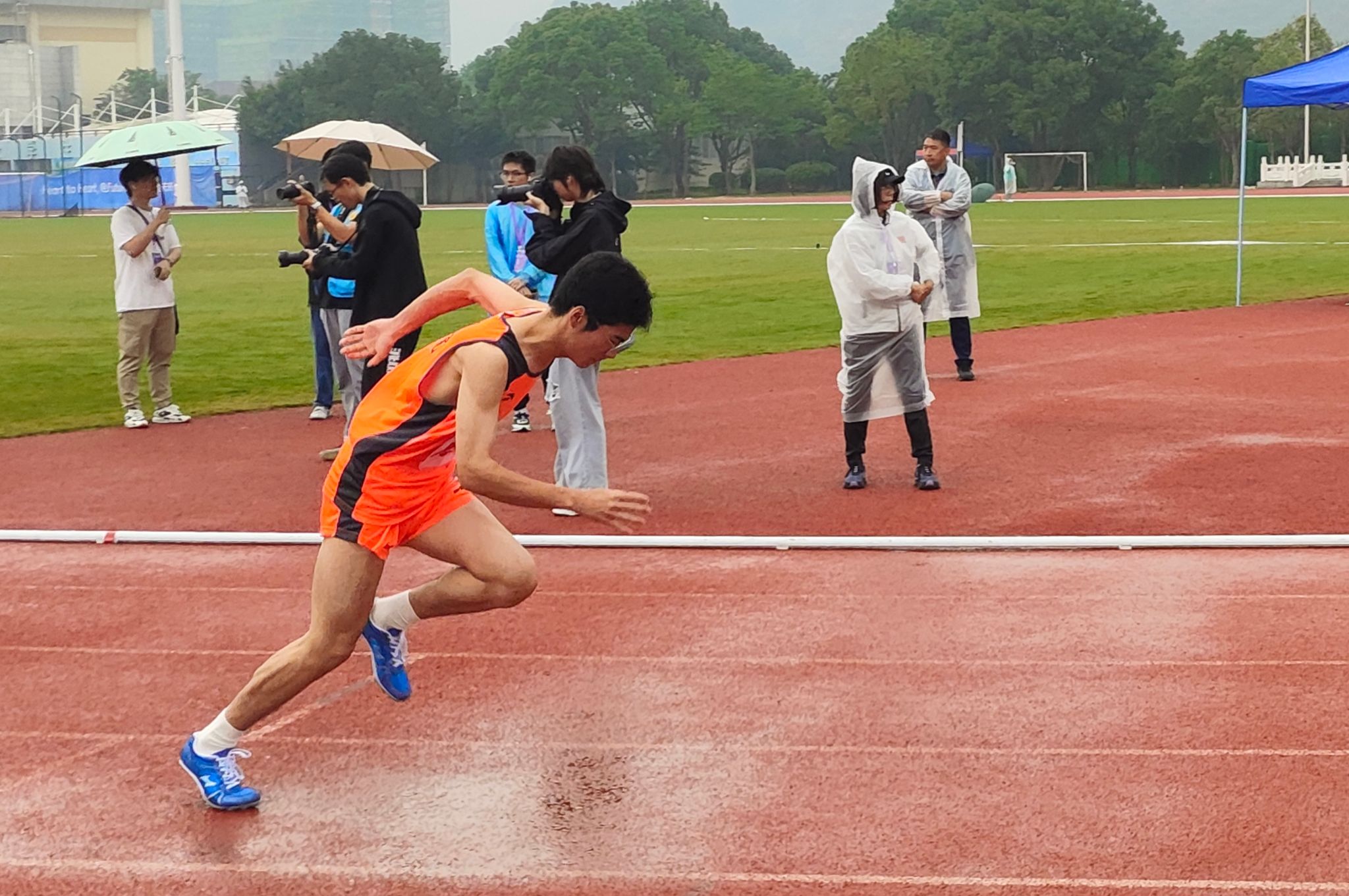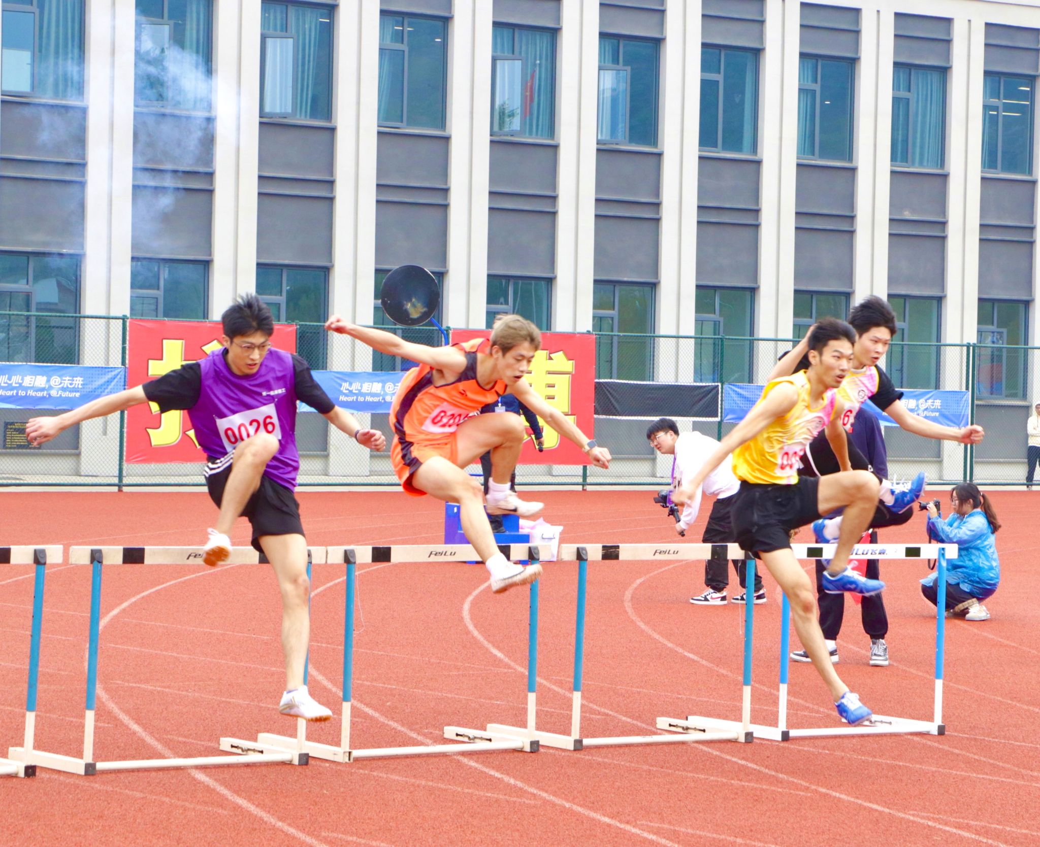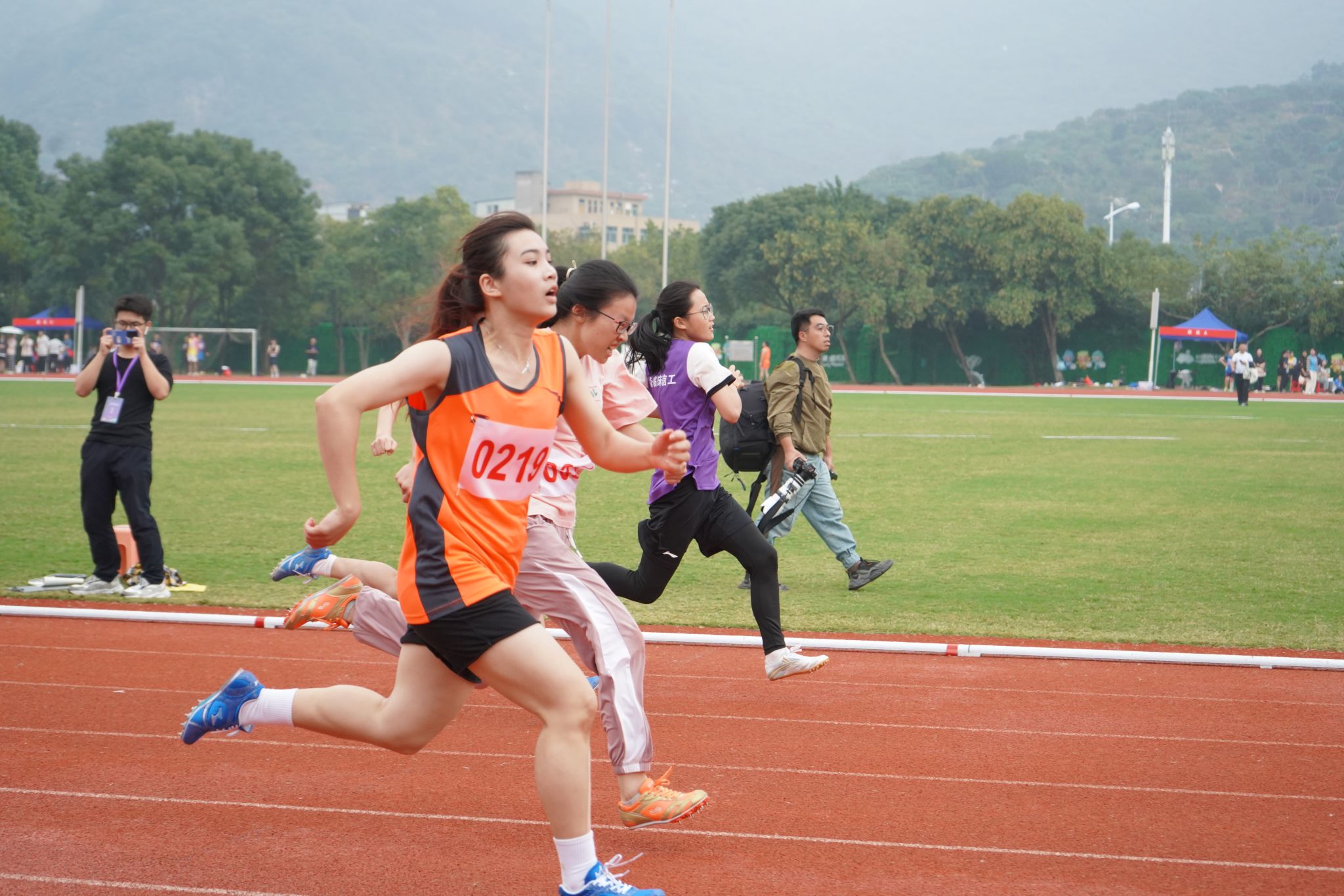 径赛项目,我院学子将汗水挥洒在跑道,让欢笑飞扬在赛场,勇立潮头。我院男子组在比赛中奋勇争先取得良好成绩:王兆乾在男子110米栏中获得第六名;邬易航在男子100米中获得第七名;吕晨垚、康子龙分别在男子400米中获得第五、七名;吕健在男子1500米中获得第八名。我院女子组争分夺秒巾帼不让须眉:蔡晨阳在女子100米栏中获得第二名;宋湘珺、胡玲、蔡晨阳分别在女子100米中获得第一、二、六名;钱锦颖、汤家贝分别在女子400米中获得第三、五名;袁艺锦、陈乐霖分别在女子1500米中获得第二、六名。4×100米接力的赛场上我院运动员齐心协力,勇往无前——何骏杰、黄敏峻、宋佳骏、邬易航获得男子组第四名;宋湘珺、汤家贝、胡玲、钱锦颖获得了女子组第一名。其中我院女子组接力以0:53.90的好成绩打破了原校记录。