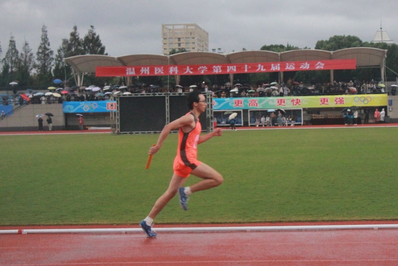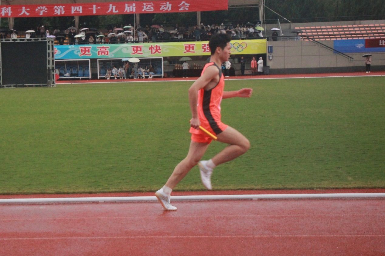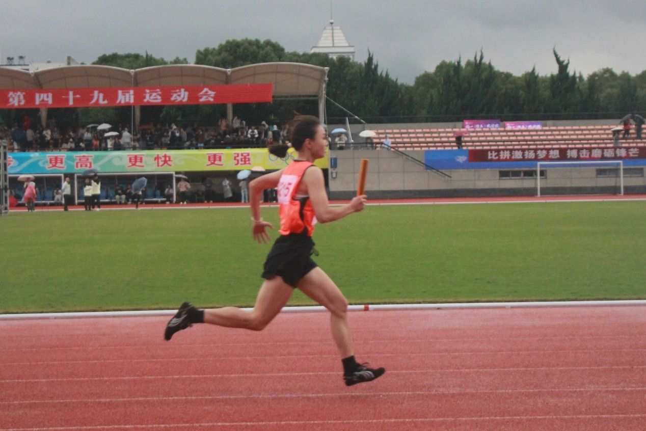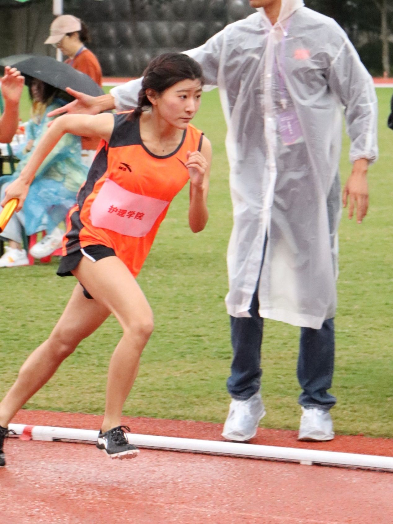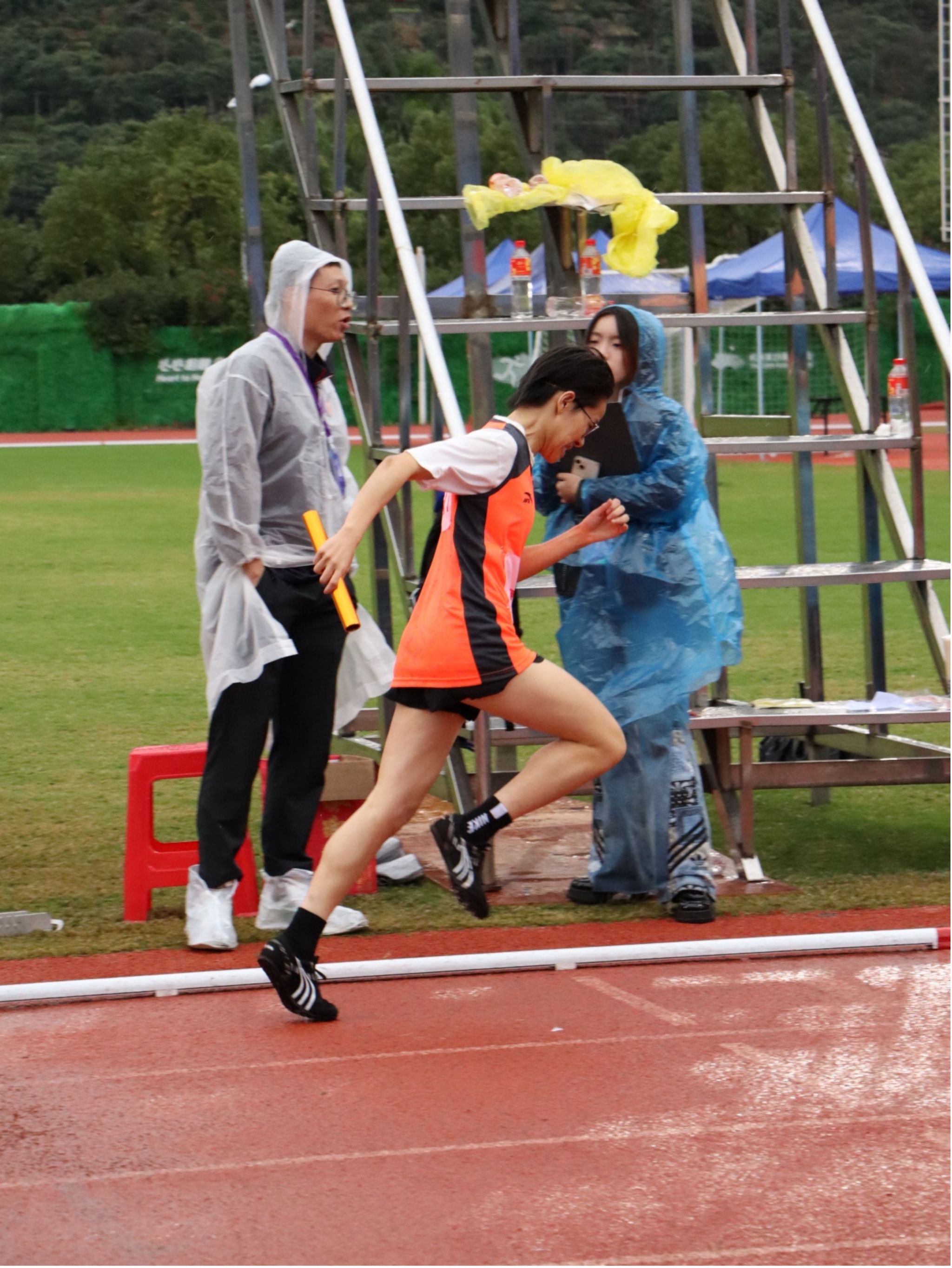 径赛项目,我院女子取得良好成绩:宋湘珺、钱锦颖、汤家贝分别在女子200米决赛中获得第一、二、四;胡玲在女子200米决赛中获得第七名;袁艺锦、刘彩燕在女子800米决赛中获得第二、六名。我院男子取得良好成绩:吕健、周睿在800米决赛中获得第五、六名。4×400米接力的赛场上,我院运动员齐心协力,奋力拼搏——钱锦颖、汤家贝、袁艺锦、宋湘珺获女子组第一名;邬易航、康子龙、鲍玺、吕晨垚获男子组第四名。