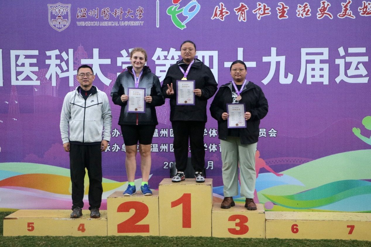 田赛项目,我院金雨欣在女子铅球决赛中获得第一名,并突破学校记录;我院金雨舒在女子铅球决赛中获得第三名;我院邬易航在男子跳高决赛中获得第三名;我院徐嘉骅在男子跳远决赛中获得第六名;我院王兆乾在男子标枪决赛中获得第六名。
