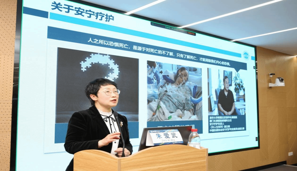 朱爱武分享了安宁疗护病房建设的实践与体会,她指出安宁疗护以临终患者和家属为中心,通过多学科协作模式,为疾病终末期患者提供身体、心理、精神等方面的照护和人文关怀服务,旨在治人而不是治病,致力于为患者提供社会、人文、情感慰藉,让临终者善终,失亲者善别,在世者善生,让生命更有尊严。