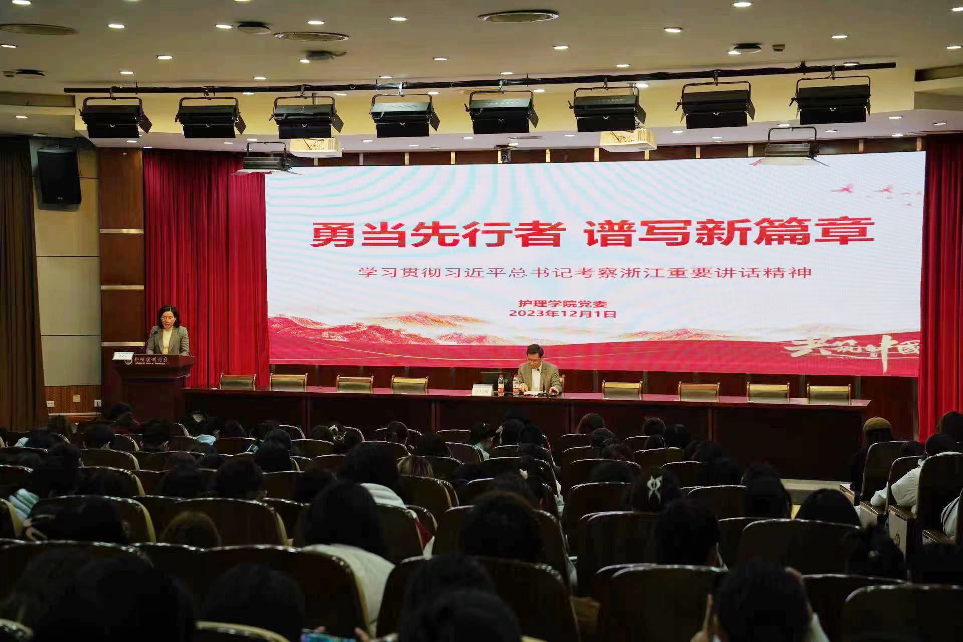 护理学子将以更高的政治站位、更加自觉学深悟透习近平总书记考察浙江重要讲话精神,在奋进中国式现代化新征程上勇当先行者、谱写新篇章。在学院高质量发展的引领下,将人生理想融入复兴伟业,在复兴伟业中书写青春荣光!