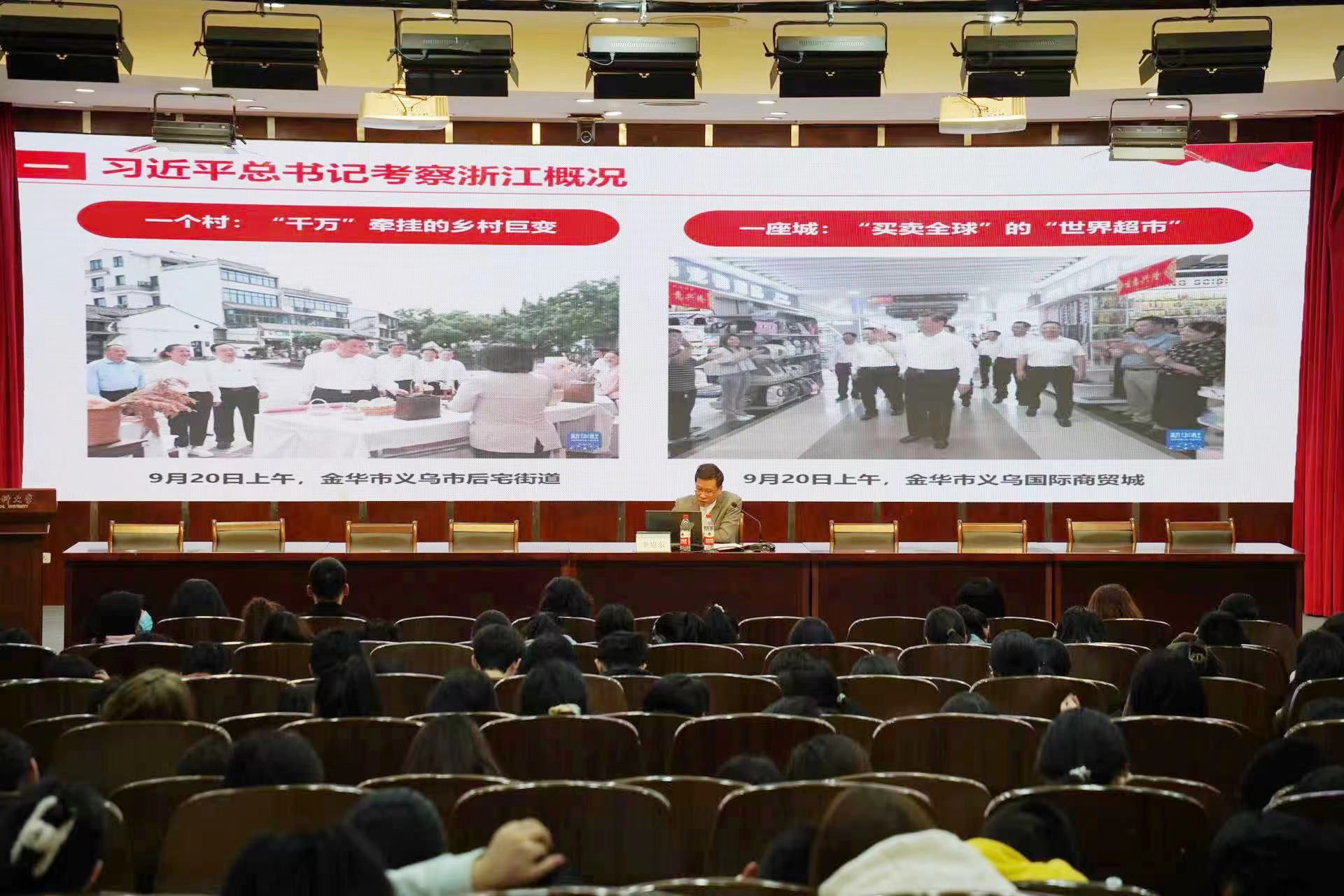宣讲时,李旭东书记从深刻感悟习近平总书记考察浙江的里程碑意义、对浙江大地的深情厚爱、对浙江发展的高瞻远瞩、对浙江发展的殷切期待等四个方面,就如何深刻理解把握习近平总书记考察浙江重要讲话精神的核心要义进行阐释,并强调了“八八战略”的优越性。李旭东书记强调学习好领会好贯彻好习近平总书记重要讲话精神的重要性,希望广大学子牢记习近平总书记殷殷嘱托和殷切期望,在青春的赛道上跑出当代青年的最好成绩、跑出自我人生的最美风采。
