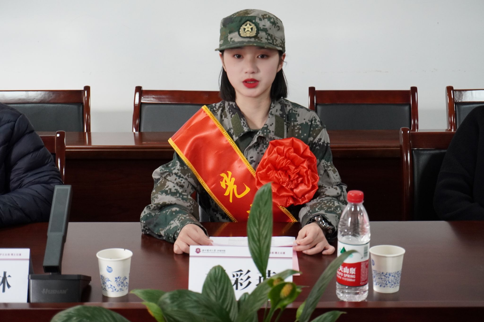 在现场交流环节,刘彩燕同学表达了对学校和学院培养的感谢,并表示应征入伍是出于对祖国的忠诚与热爱,想要为国家的繁荣发展贡献自己的力量。高考结束自己应征入伍失败,没有灰心,仍然坚持体能训练和关注报名通知,这次终于在18岁之时实现了自己的绿色军营梦。未来她会秉持责任感、使命感,努力发挥自己的价值,创造属于自己和祖国的美好未来。