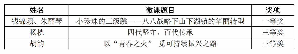 2024年是推进高质量发展的一年,是突围向上砥砺奋进的一年。为全面贯彻党的二十大和二十届二中全会精神,深入学习贯彻习近平总书记考察浙江重要讲话精神以及省委“新春第一会”精神,进一步强化高校青年学生的思想政治引领,带领团员青年忠实践行“八八战略”,我校宣传部以“勇当先行者,谱写新篇章”为主题开展2024年思政微课大赛。在该比赛中,我院学子钱锦颖、杨桄、胡韵分别荣获一等奖和三等奖。