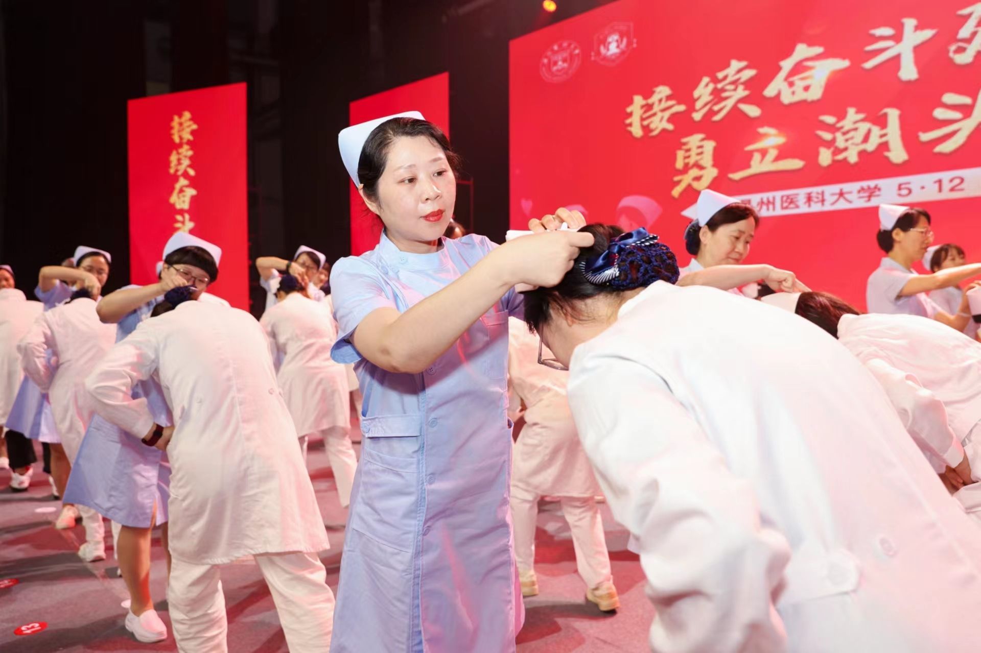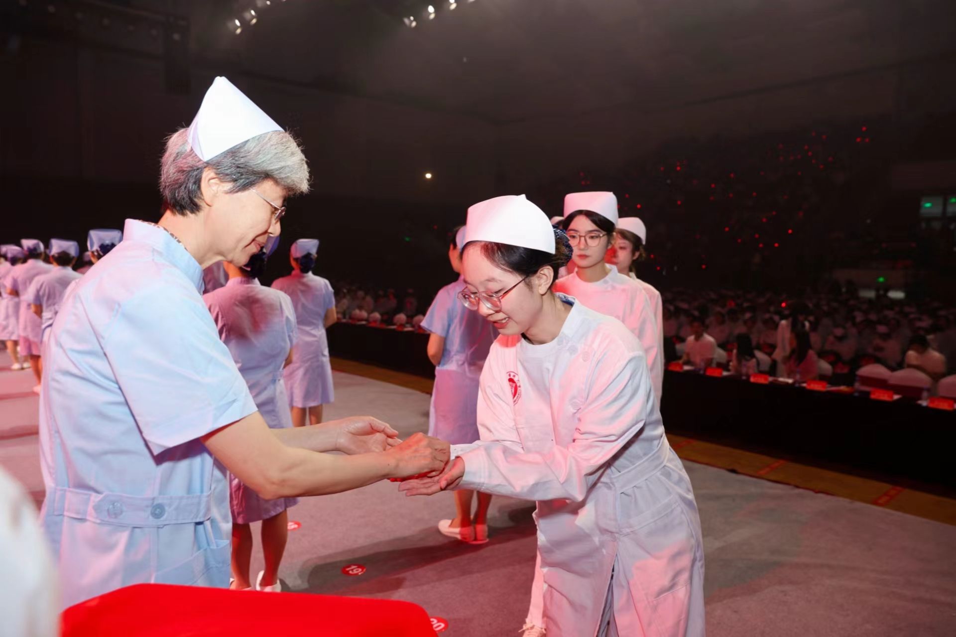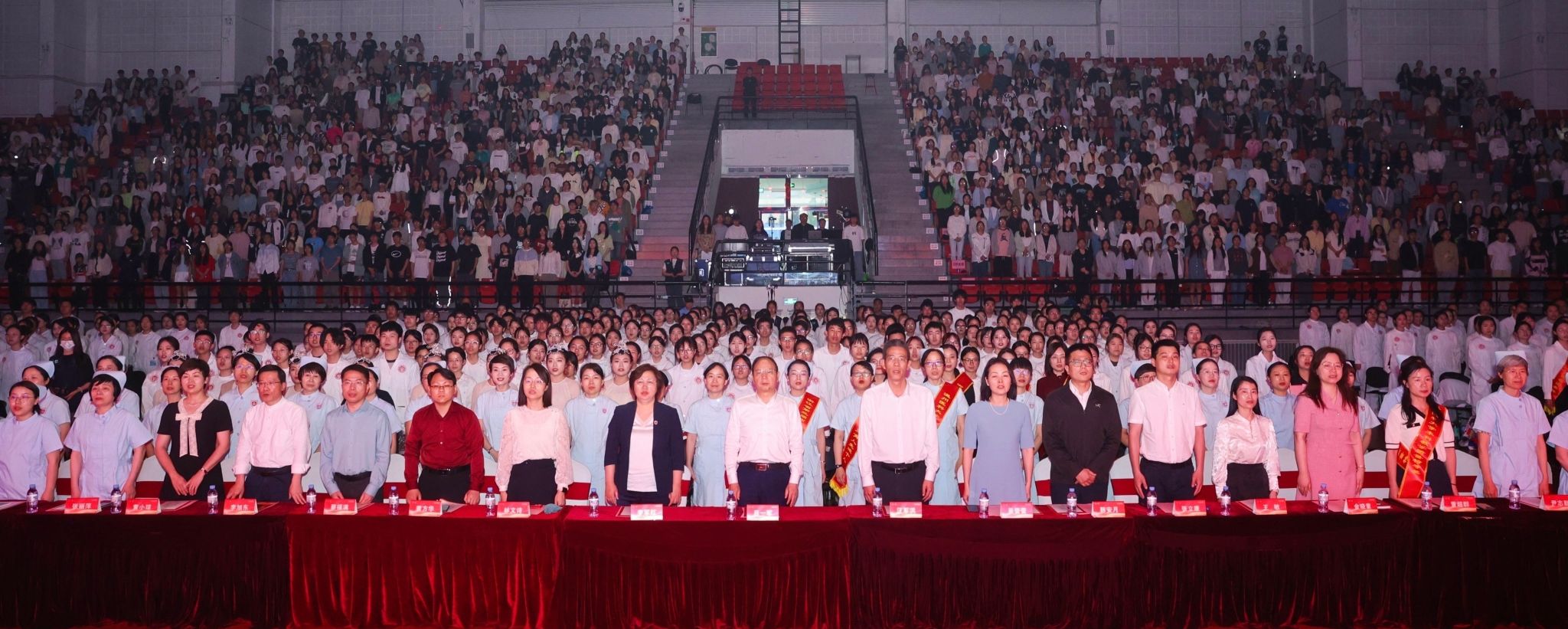 5月11日晚,学校纪念国际护士节活动暨授帽仪式在茶山校区学生活动中心举办。校党委书记吕一军,校党委副书记汪军洪,校党委委员、宣传部(教师工作部)部长李军红出席仪式,学校职能部门、学院相关负责人以及近2000名师生参加此次活动。