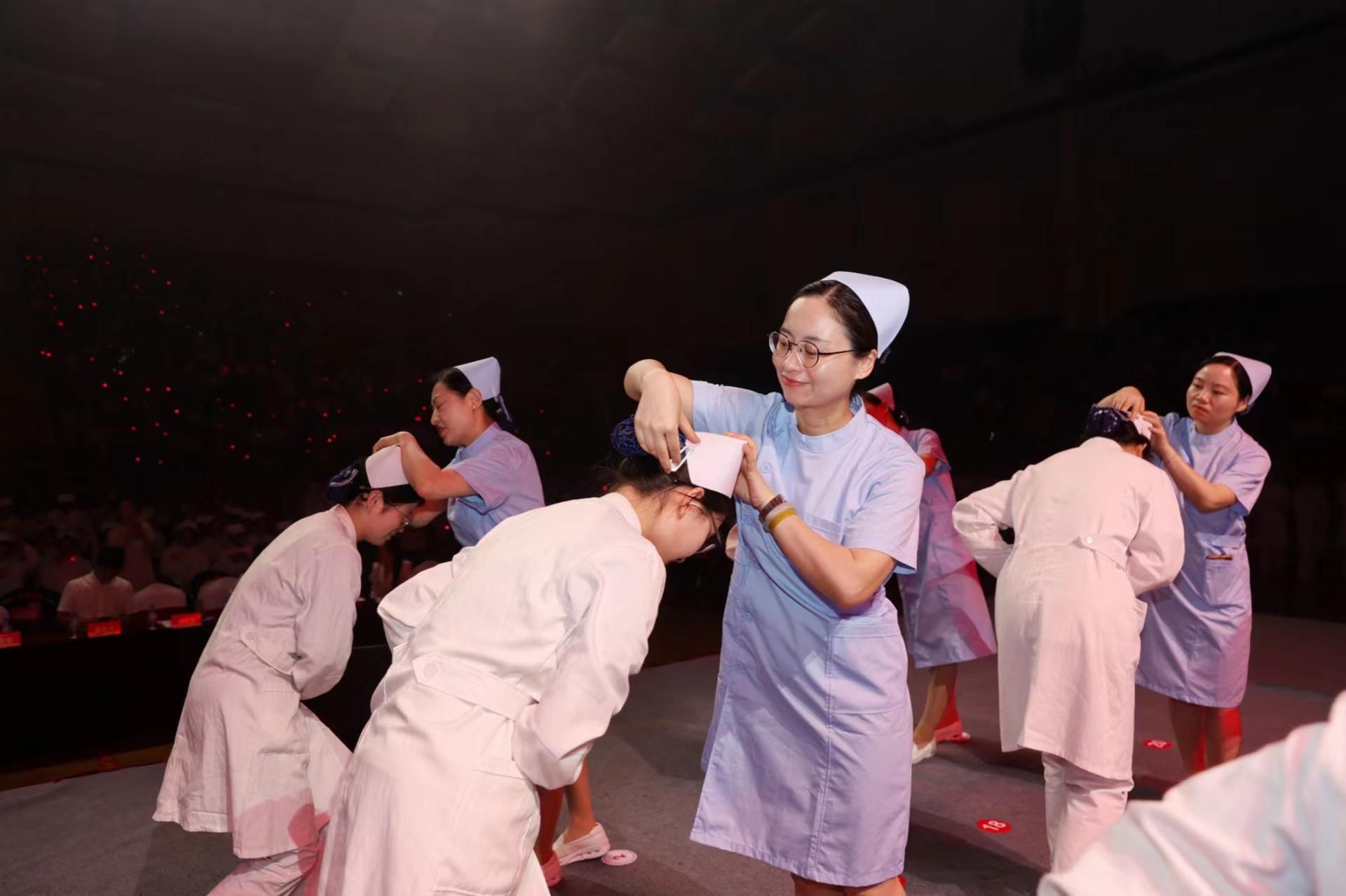 一袭飘然白衣衬托一颗纯洁的心,一顶别致燕帽是一项守护生命的重任。授帽仪式上,护生手持明灯、神色坚毅,由护理前辈们亲手为他们佩戴圣洁的燕尾帽。接过前辈手中的蜡烛,他们庄严宣誓,将发扬前辈们“自我燃烧,照亮他人”的无私精神,向每一个患者施以温暖的爱心,将毕生热诚献给护理事业。