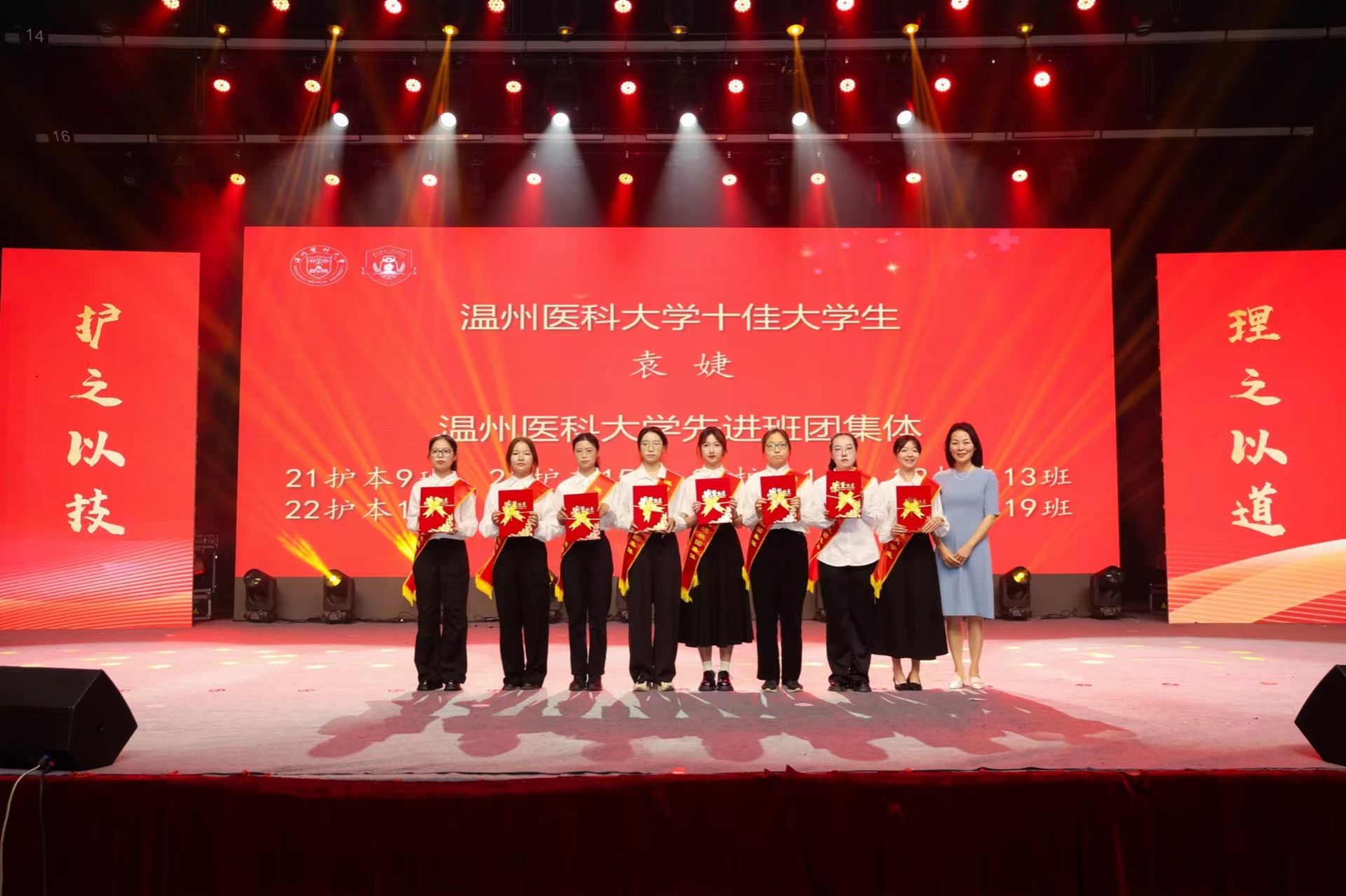 活动还对第十八届“挑战杯”全国大学生课外学术科技作品竞赛、浙江省第三届高校教师教学创新大赛获奖团队,温州市杰出护理管理者、校本科教学质量特别奖,校十佳大学生等21项荣誉获得者进行表彰,通过表彰这批积极奋进、砥砺前行的师生典型,更好地激励新一代护理人继承和发扬“生命至上 人民至上”的人道主义精神,在无影灯下焕发青春光彩。