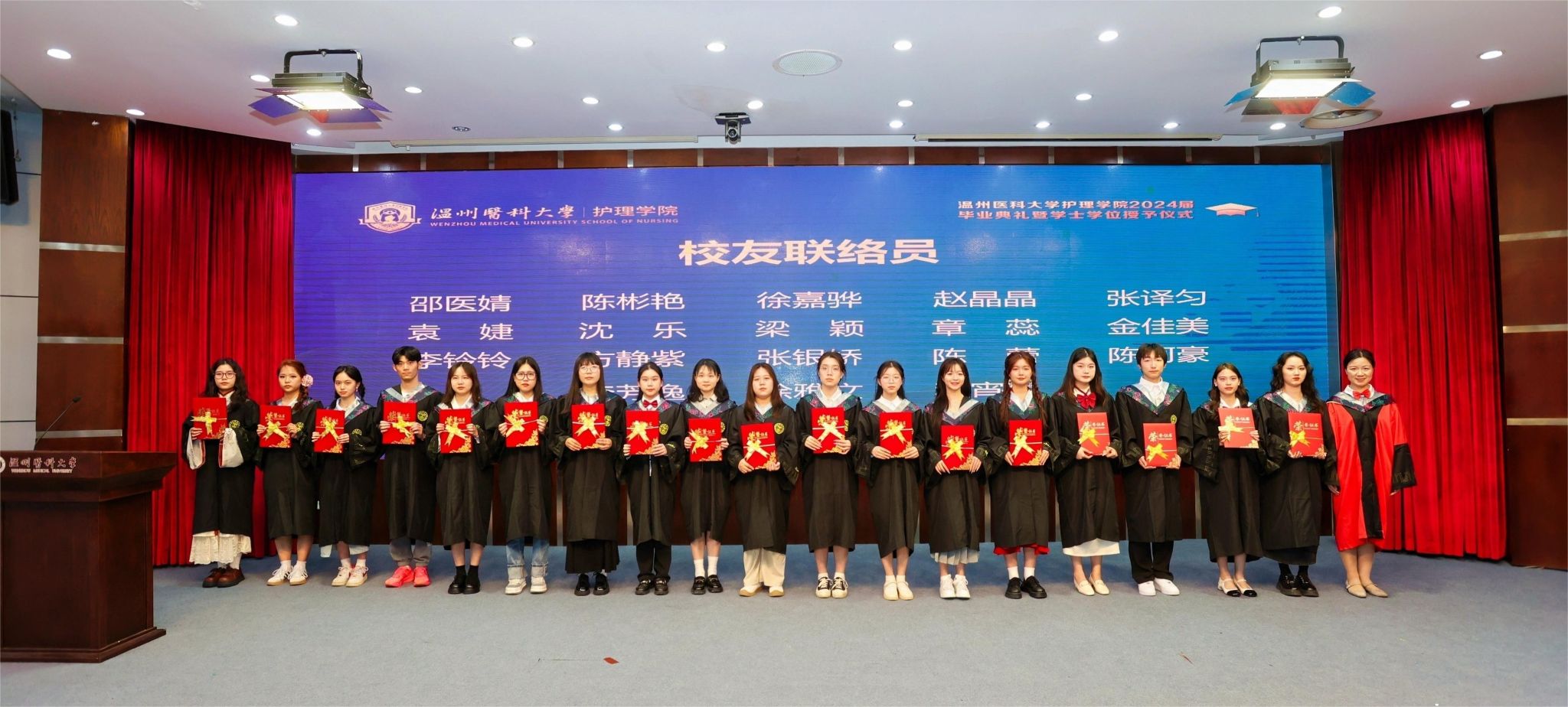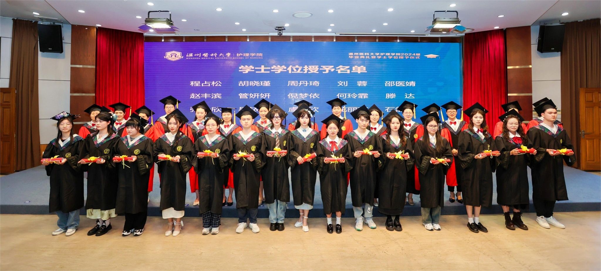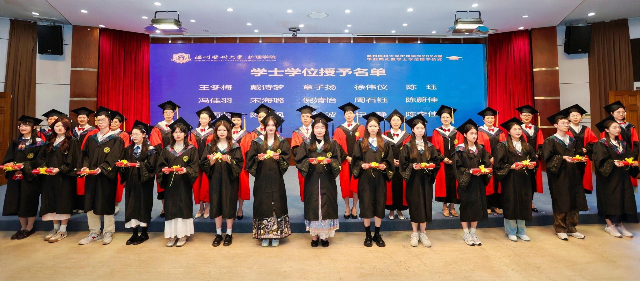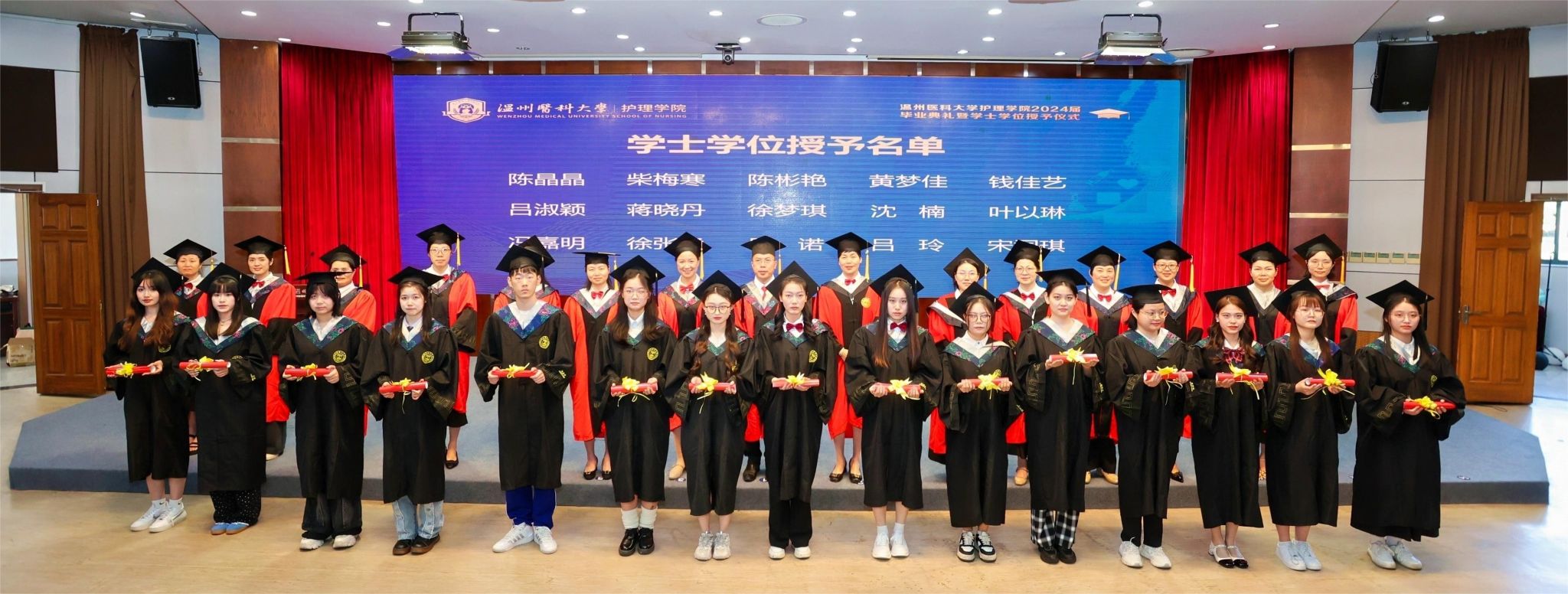 2024届本专科毕业生中有20位学子获浙江省优秀毕业生称号,85位学子获温州医科大学优秀毕业生称号,35位同学成功考取研究生。其中20护本7班蒋泽凯同学成功考取浙江大学护理学专业研究生;20护本6班袁婕同学荣获校“十佳大学生”荣誉称号,同时她也在第十八届“挑战杯”全国大学生课外学术科技作品竞赛获一等奖;21护专金雨欣同学在全国大学生田径锦标赛女子铅球项目中取得第八名好成绩,刷新我校田径历史;20护本1班团支部成功入选浙江省高校“活力团支部”,多位毕业生在核心期刊及以上杂志发表论文或在各类创新创业大赛中获得佳绩。