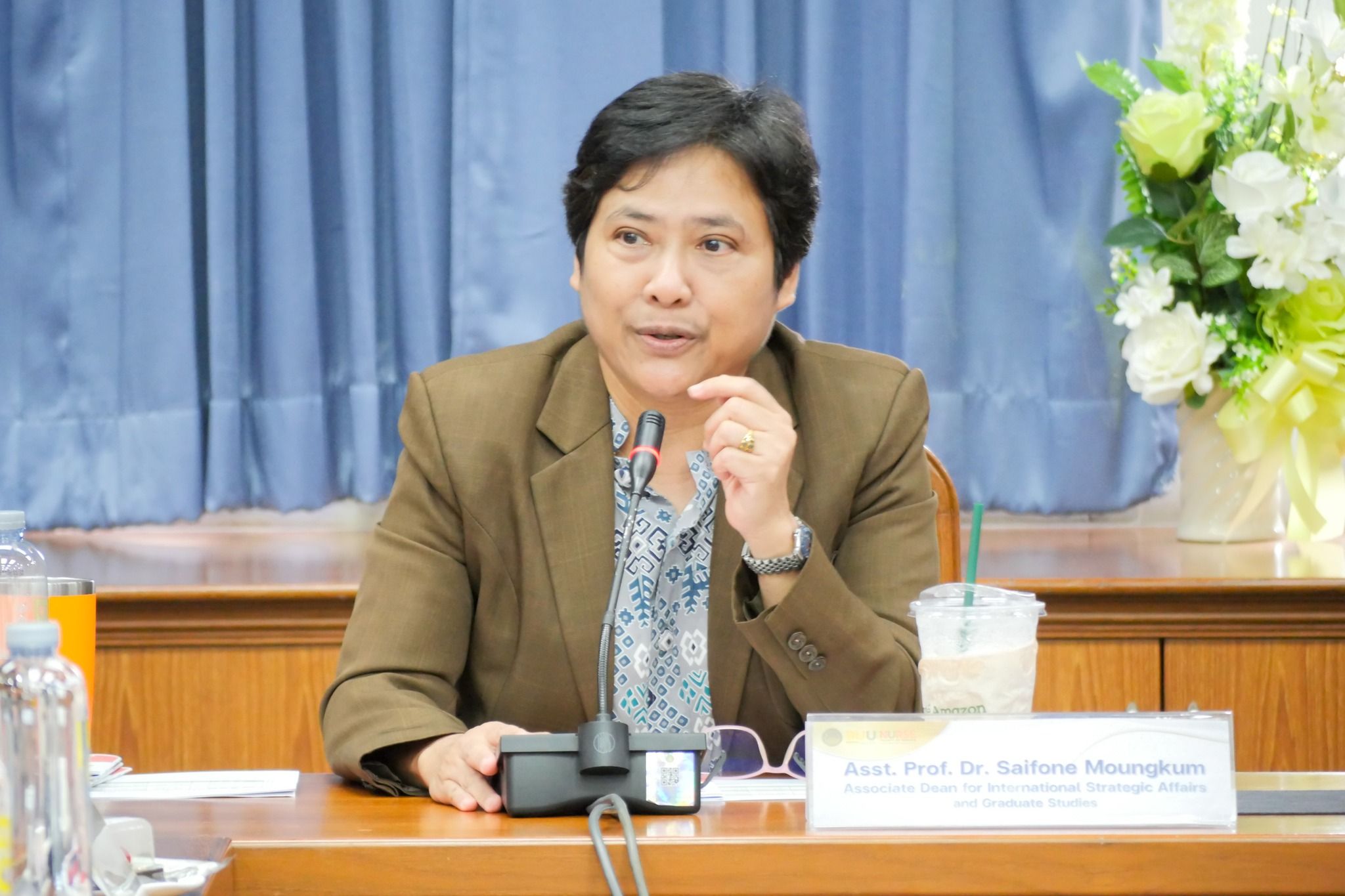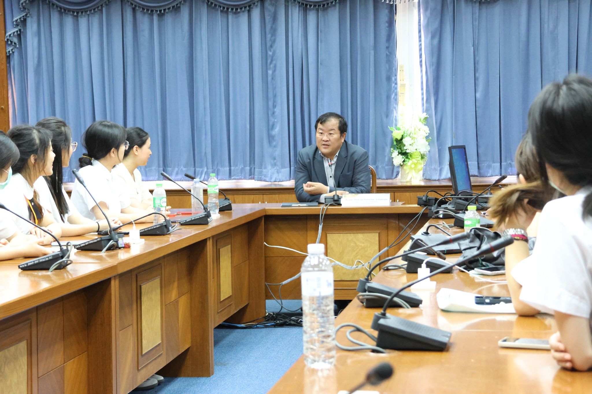 此外,访学团前去拜访了泰国东方大学的校长和威廉希尔体育院长,他们热切询问成员们来到泰国的感受以及在大家的学习计划和目标,并再次欢迎访学团来到泰国东方大学威廉希尔体育交流学习。