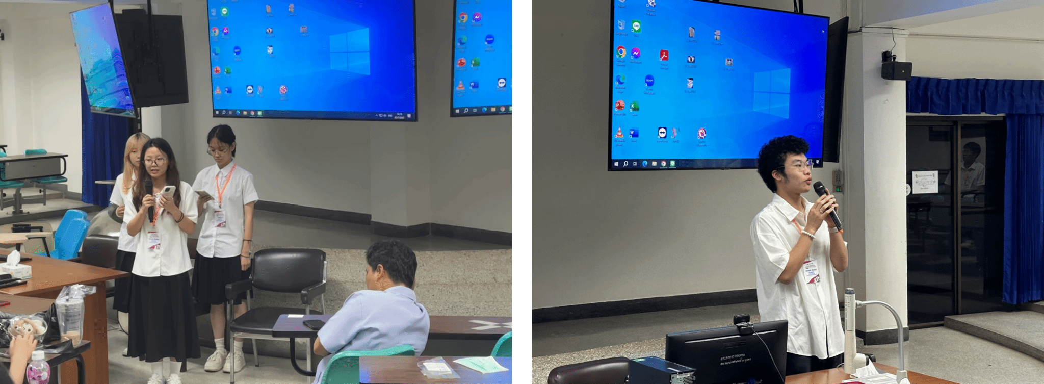 访学团成员们齐聚在虚拟仿真实验室,在Ajarn Darussanee老师的指导下成员们体验了四个精心设计的仿真情境。课堂上,成员们展开热烈讨论,通过角色扮演体验情境。陈喜婕同学表示,这次的活动不仅让她更好地巩固了所学知识,也在实践中无形地提升了沟通和团队协作能力。