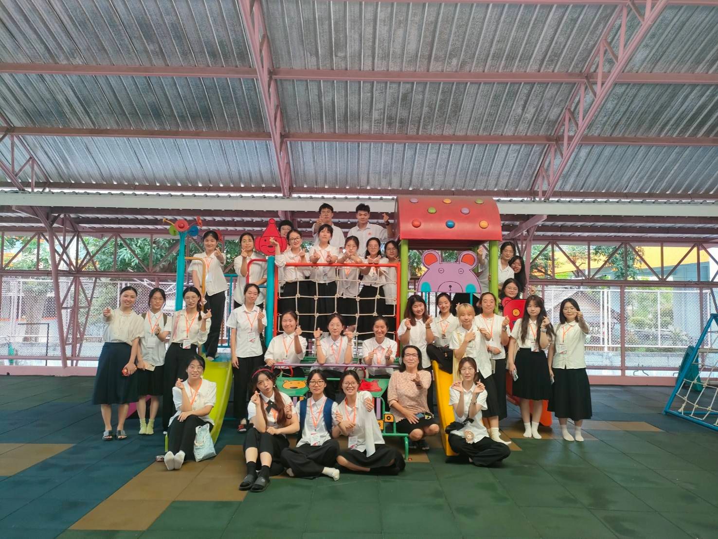 访学团在泰方老师的带领下来到了威廉希尔体育儿童研究和发展中心。幼教老师介绍道,该中心是为威廉希尔体育的学生学习实践幼儿护理的基地。