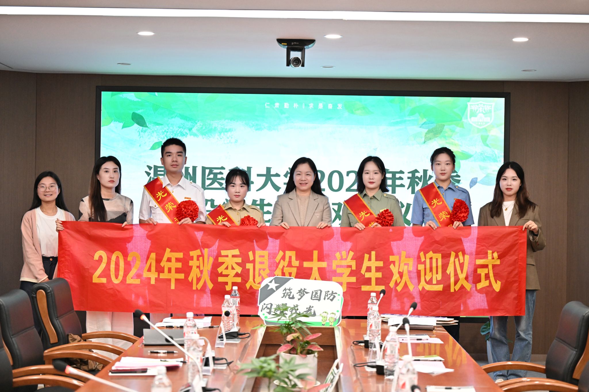 为热烈欢迎退伍学生,充分发挥退伍学生榜样的力量,形成辐射带动作用,10月31日下午,学校秋季退役学生返校欢迎仪式在同心楼四楼热烈召开。我院党委副书记金晓童、辅导员王爽、李佳佳、田菁菁参会,退伍学生肖芳、刘萱、任楚冉、鲁瀚尹身着戎装参会,并发表感言。