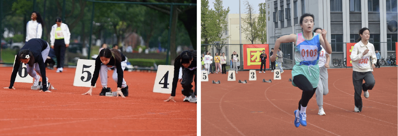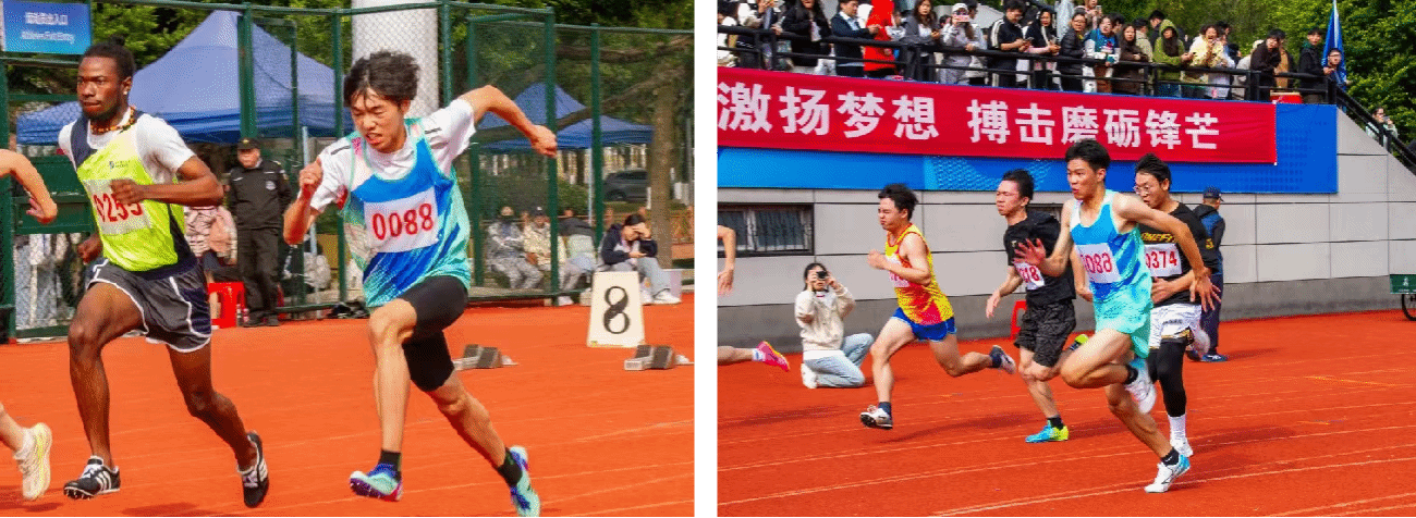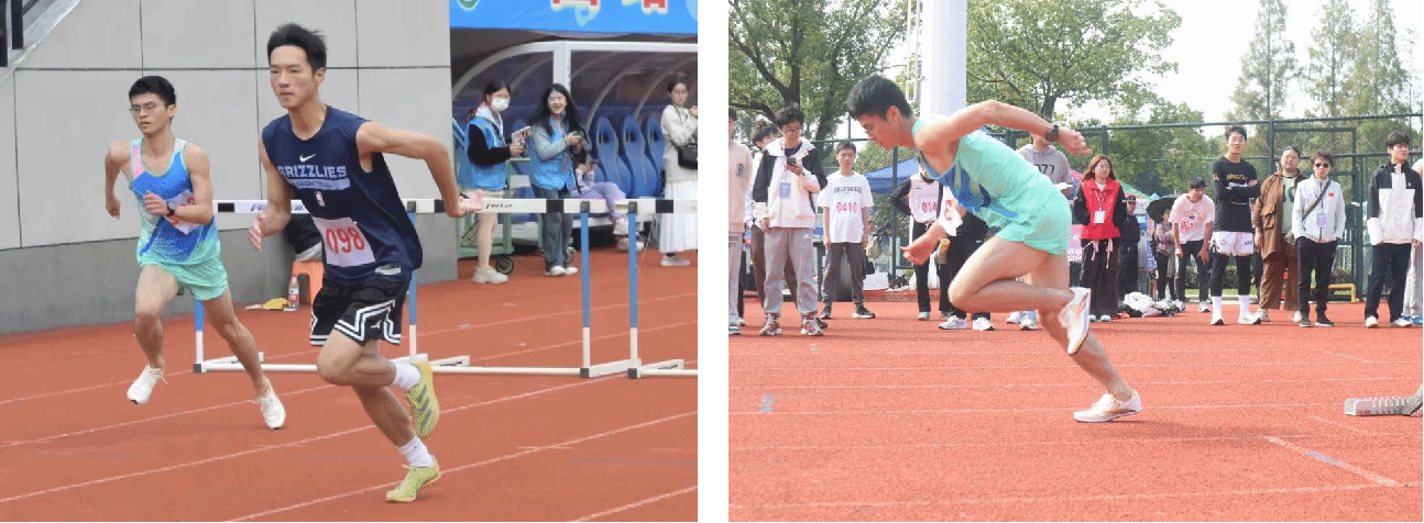 学生径赛项目中,我院学子在绿茵场上挥洒汗水,让激情在竞技中绽放,勇攀高峰。我院学生女子组争分夺秒巾帼不让须眉:石可馨、蔡晨阳、倪楚璇在学生女子100米栏中分别获得第二、三、五名;胡玲、宋湘珺、钱锦颖分别在学生女子100米中获得第三、四、七名;杨玉珍、王晶熠在学生女子400米中分别荣获第五、八名;袁艺锦、陈乐霖分别在学生女子1500米中获得第四、五名;我院学生男子在比赛中奋勇争先取得良好成绩:钟泽汉、黄玄烨在学生男子100米中分别获得第二、五名;何行健、卫阳磊在学生男子110米栏中分别获得第七、八名;吕晨垚在学生男子400米中荣获第七名。4×100米接力的赛场上我院运动员齐心协力,勇往无前——宋湘珺、石可馨、胡玲、钱锦颖获得学生女子组第一名;卫阳磊、黄玄烨、邬易航、钟泽汉获得学生男子组第三名。