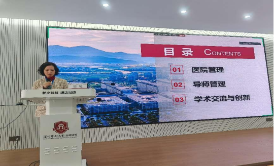 诸葛林敏副主任详细介绍了附属第二医院的基本情况、护理团队的师资力量及研究生管理制度,她指出,研究生要充分利用临床,积极投身临床,为未来的学术和职业发展打下坚实的基础。