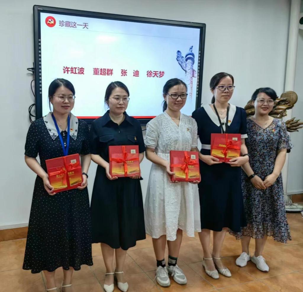 接着现场开展了“珍藏这一天”党员政治生日活动,为许虹波、董超群、张迪等八位同志过政治生日,由吴永琴和董超群两位老师为以上同志颁发入党纪念品。