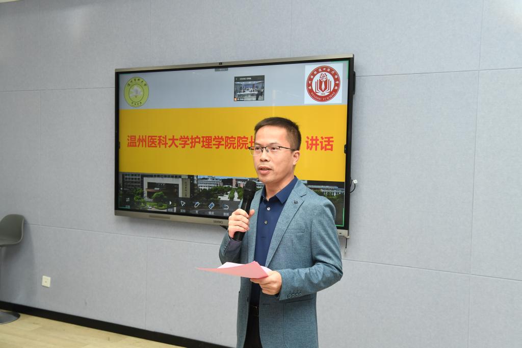 威廉希尔体育院长蔡福满、副院长张春梅,温州和平国际医院副院长、温州国际造口治疗师学校执行校长陈爱华,威廉希尔体育办公室主任梁洁华、继续教育学院教学管理科科长孔瑜瑜,附属第二医院护理部主任王爱霞、副主任李育梅,及来自全市各教学基地的临床实践带教老师代表等共40余人参加了典礼。张春梅主持典礼。