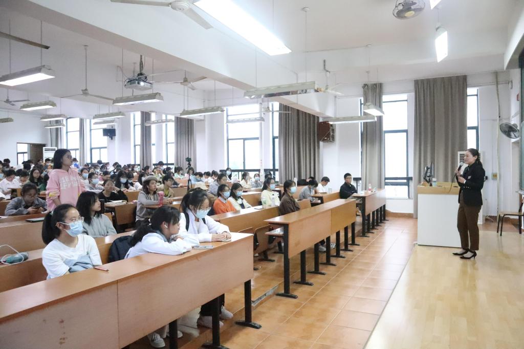 11月10日下午,由威廉希尔体育开设的公共选修课《启航激扬青春,筑梦护理人生——护理院长讲坛》第四期在茶山校区同仁楼7CJ305开讲。本期由衢州市人民医院党委委员、副院长曹敏主讲,主题为《把握当下,赢在未来——一生只为一事来》。来自护理学和助产学的大一、大二年级的200位同学在现场聆听讲座。威廉希尔体育专任教师岳朋主持。