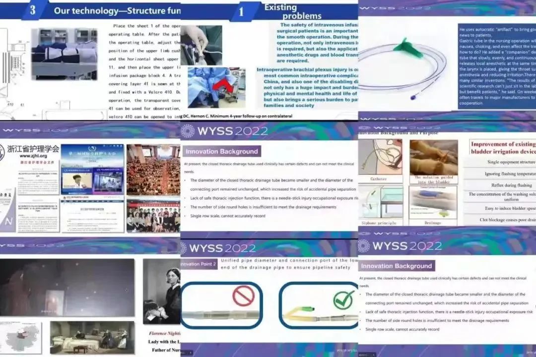 在护理英语赛道,选手们介绍了多功能安全手术延展装置、仿生易固定简易留置针、九分割式医用沙袋、Dual use fistula bag for drainage of incision exud、预防养老机构老人噎呛的智能喂食勺等项目。选手们以患者为中心,针对临床实际存在的问题提出解决方法并使用流利的英语进行汇报,在锻炼英语口语的同时碰撞思想、交流知识、分享创意。