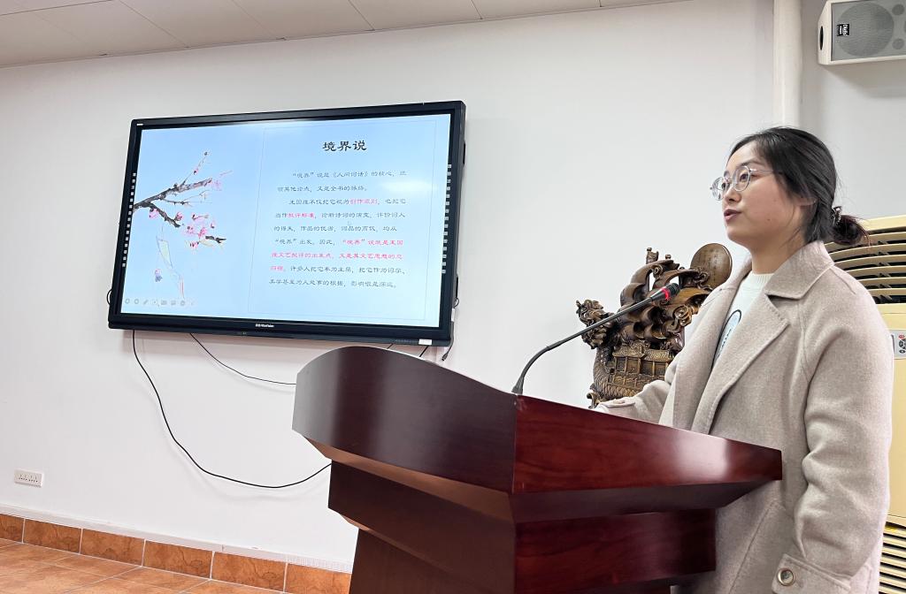 李萌老师带来了由著名学者王国维创作的《人间词话》,她从作品简介、内容赏析、阅读感悟、阅读建议四个方面展开,向我们展示了作者接受了西洋美学思想洗礼之后,以崭新的眼光对中国古文学所作的评论。诗词中三种境界的引申含义“立志—不悔—成功”,是自古成功的共同逻辑,同时让我们感受到了古诗词的韵律美。