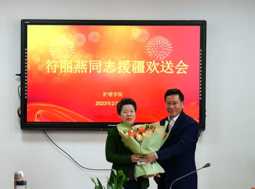 2月23日下午,学院在7C306会议室为即将踏上援疆征程的符丽燕同志举行欢送会。院领导及全体教职工参会。院长蔡福满主持会议。