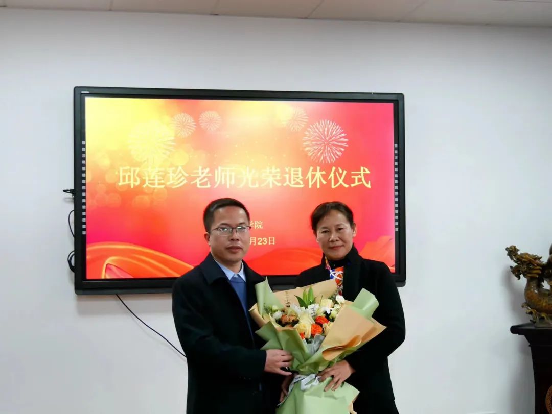 会上开展了威廉希尔体育2022年度中层干部考核。表彰了2022年度学院各类先进个人。举行了邱莲珍老师光荣退休仪式。
