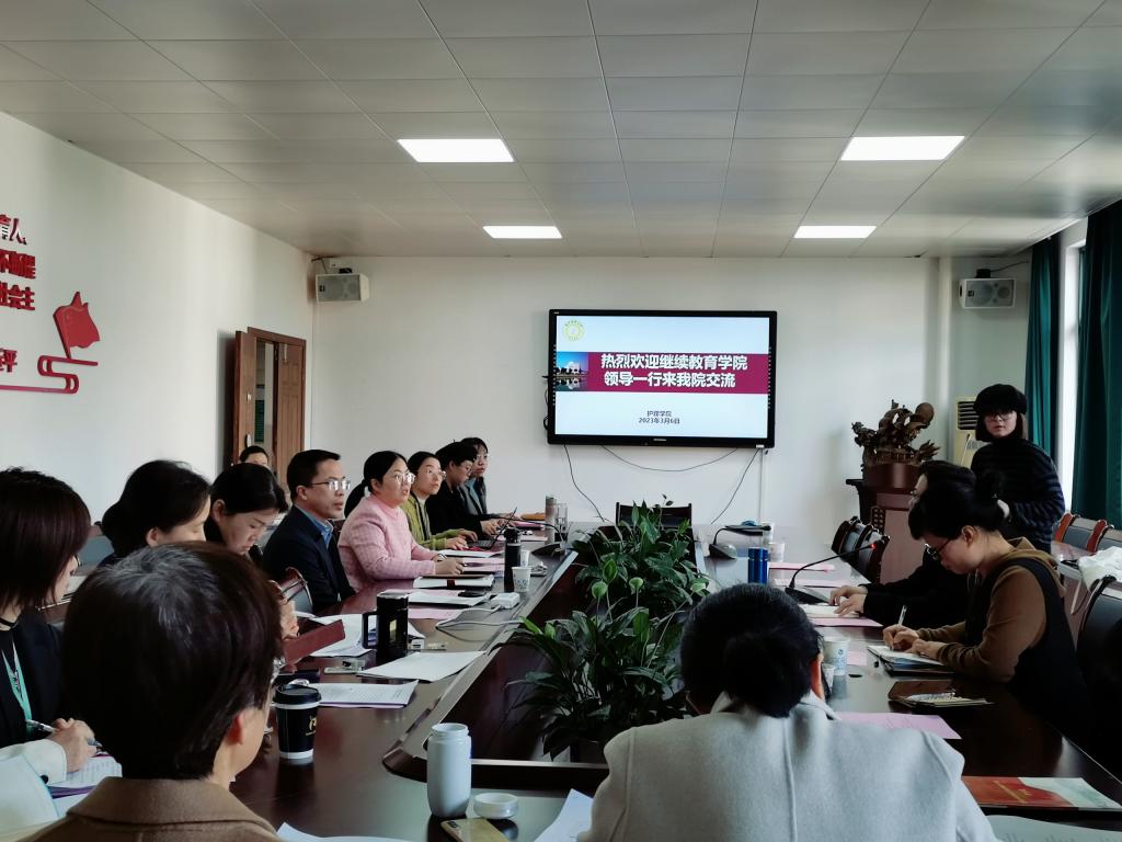 3月6日下午,继续教育学院院长王世泽、副院长邵凯隽以及教务教学科室相关负责人来我院讨论交流。学院院长蔡福满、分管教学副院长杨晔琴、各教研室主任、课程授课老师、教学管理人员参加了交流会。交流会由杨晔琴主持。