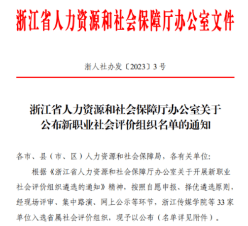 近日,浙江省人力资源和社会保障厅向社会发布一批新职业社会评价组织名单,33家单位入选省属社会评价组织,温州医科大学位列其中,新增健康照护师、老年人能力评估师两个新职业技能等级认定资格工种。