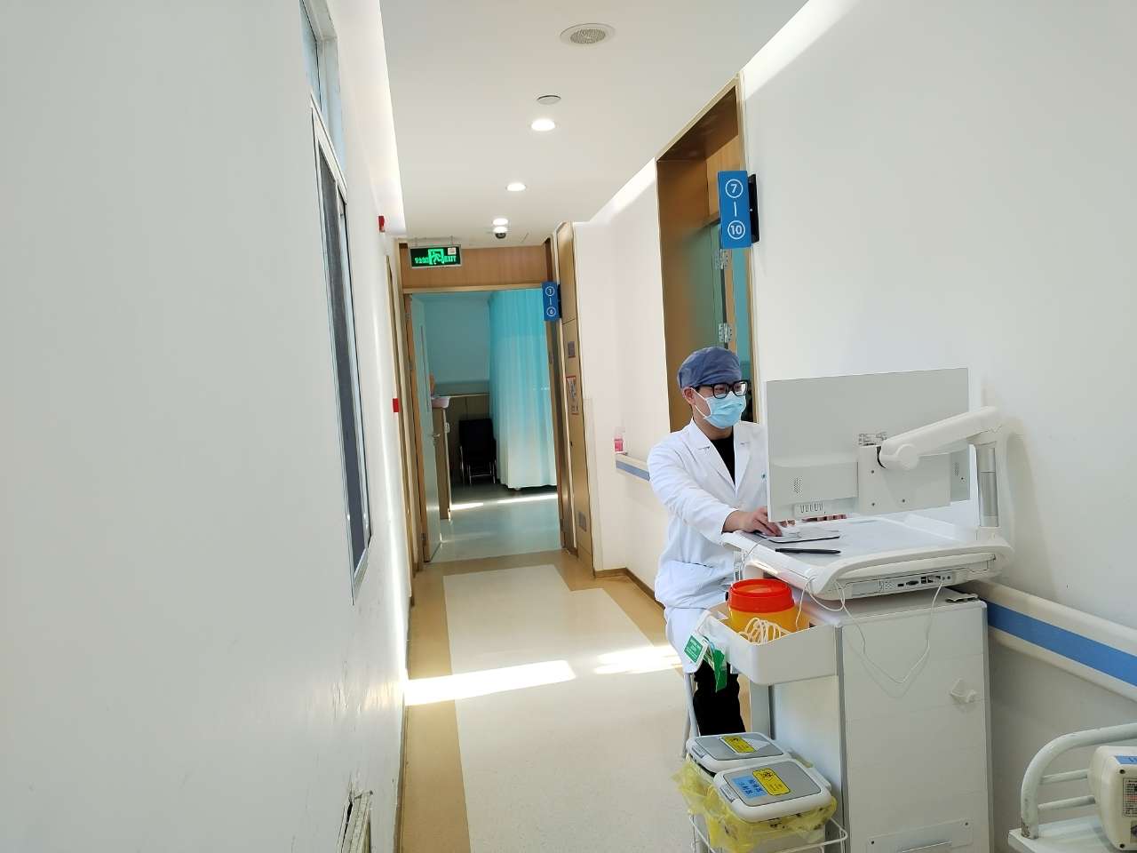 事后,他讲述这次惊心动魄的急救:“2月23日下午,我还是和往常一样在治疗病人,突然厕所传来了紧急的呼救声,我立刻放下了手中的盐水冲进了厕所,映入眼帘的是惊慌失措的家属和倒地不起的患者。老师首先去拿了血糖仪和血压计,而看着失去意识,小便失禁口吐白沫的患者,第一反应是评估他的情况。在同行老师的帮助下,我对患者实施了大概20次按压,和几名实习老师配合完成气道开放,医生到达后,说按压很好继续保持,当医生进行心率分析时发现是室颤,就立刻涂好导电膏准备除颤。”