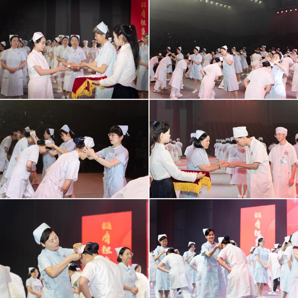 雪白的燕帽,象征着圣洁的天使。在授帽仪式上,护生们神色庄严,面容坚毅,由护理前辈为他们戴上圣洁的燕尾帽。护生接过前辈手中的蜡烛,庄严宣誓,他们将学习和发扬护理前辈们“燃烧自己,照亮他人”的精神,把真诚的爱心奉献给每一个病人,把毕生精力奉献给护理事业。